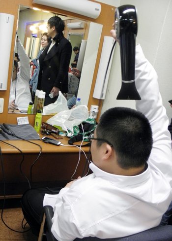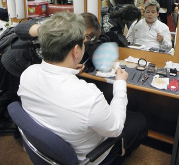 어제 밖에 날씨는 쌀쌀했지만 대기실안은 의상과 많은 사람들로 인해 북적북적하고