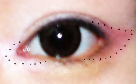 이제 3번 아이섀도우를 이용해 눈 밑을 점선만큼 발라주세요!