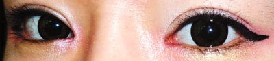 쌩눈에 렌즈만 낀 사진입니다! (아이라인은 2년전에 문신한거에요!)