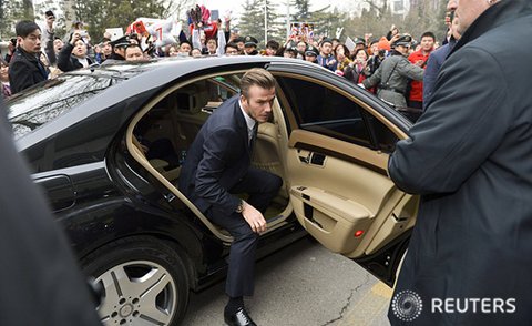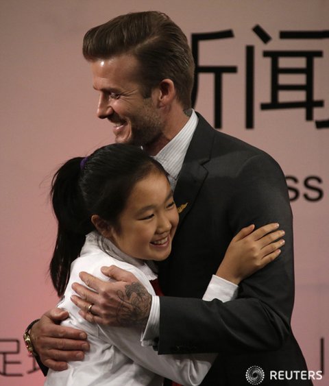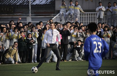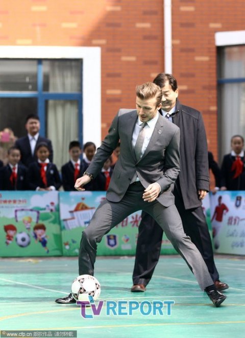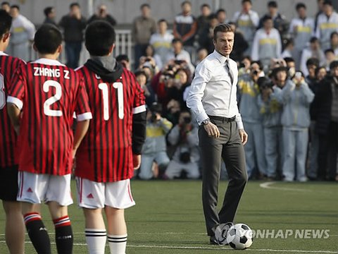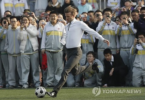 베컴 선수가 중국 글로벌 축구 대사로 선정돼 베이징을 방문했습니다.