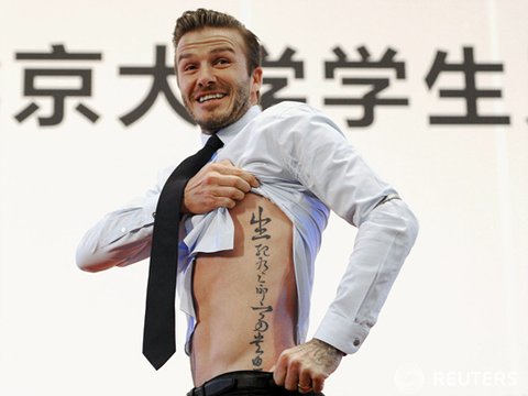 개구장이처럼 중국문신을 자랑하는 베컴