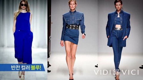 다양한 블루 컬러의 런웨이 의상들이 올 해 트렌드 컬러가 무엇인지 다시 한 번 느끼게 해주는 것 같아요.