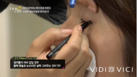 쌍꺼풀이 여러 겹으로 지는 눈일 경우 블랙 펜슬로 눈꼬리만 살짝 그려주는 것이 TIP!