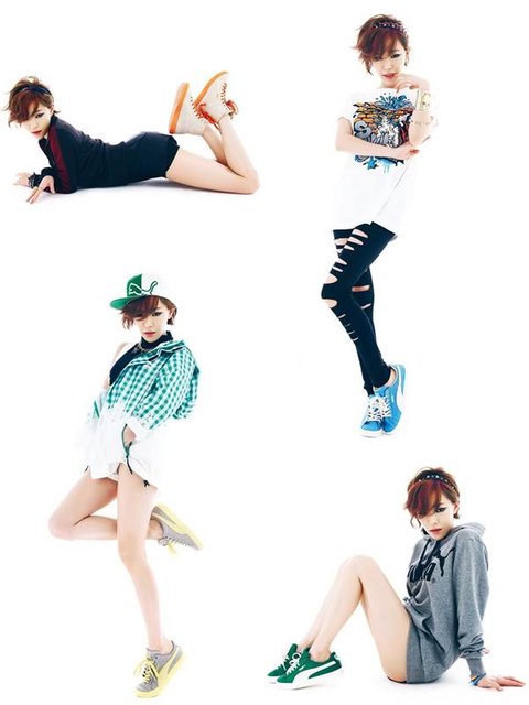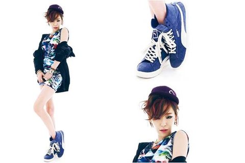 스웨이드 운동화를 포인트로 가인의 푸마 화보 보여드림.