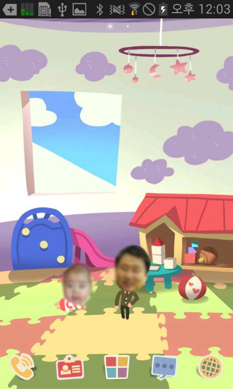 노라조 앱은 이렇게 배경화면에 제가 만든 캐릭터를 돌아다니게 합니다.