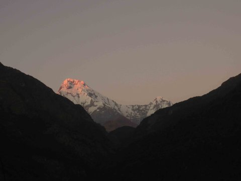 이렇게 석양 노을이 설산에 드리워져....