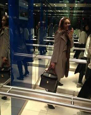 올림 머리에 코트입고 파란 쿠*백으로 일상도 우월한 듯!!