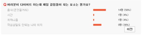 제가 2탄쓰면서 다이어트에 제일 걸림돌이 되는 요소는 무엇인가요? 라는 주제?로 투표를 했는데