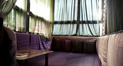 이렇게 얇은 커텐이 샤라랑 쳐져 있어서 편하게 있어도 눈치보일 것도 없고 헤헿