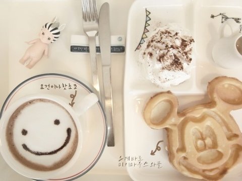 나오는 머그컵이나 접시에도 쪼끄맣게 뭔가 그려져 있다고 하니까