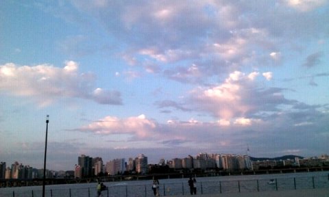 늦은오후에서 저녁으로 넘어갈랑말랑 할 때 노을보면서