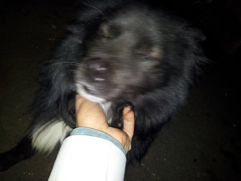 쓰다듬으며 목덜미를 살짝 안아잡고 다른 순찰팀에게 구조요청을 했습니다