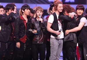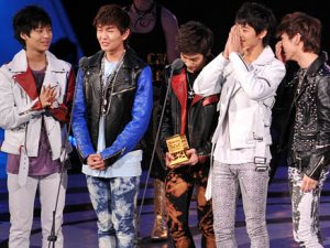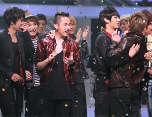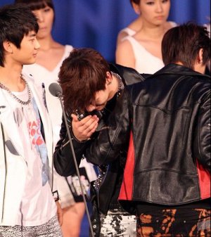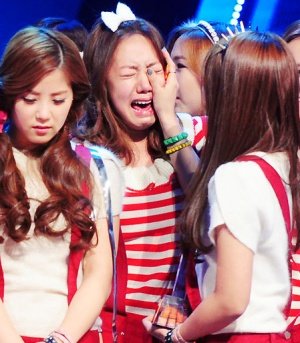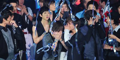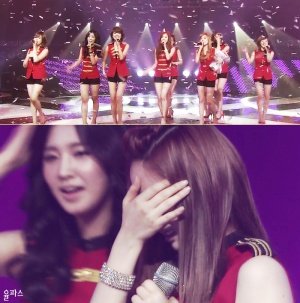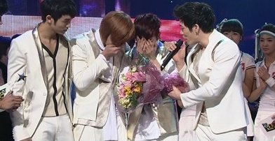 기쁨의 눈물 흘리는 아이돌 멤버