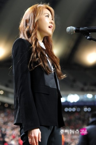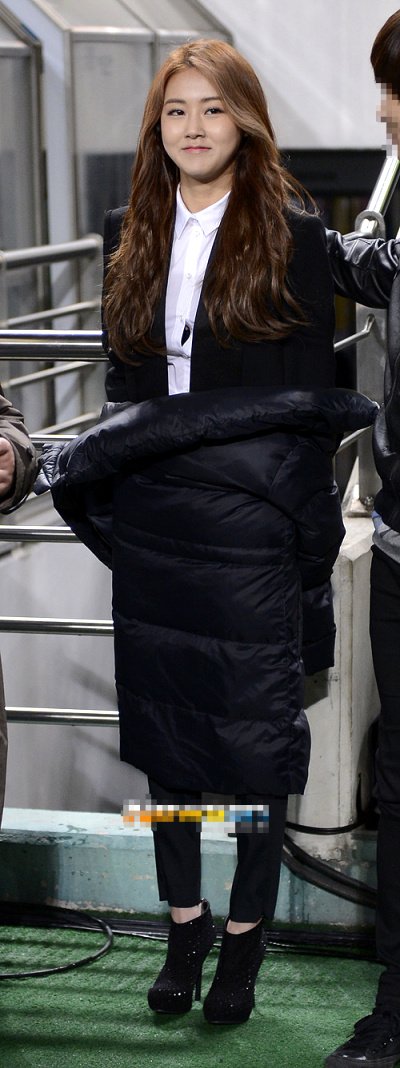 어제 열렸던 축구 경기장에 말쑥하게 차려 입고 등장한 허가윤