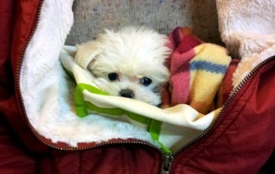 즉시 분양!!! 이동가방이없어서 이렇게 꽁꽁 싸매서 데려왔어요.