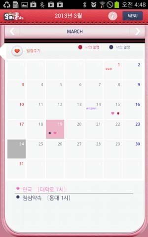 상대방의 달력에도 일정이 추가되는 그런 어플이에요.