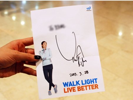 본인의 이름을 딴 연아 워킹화(W LITE LAYER 1)에도 사인을 해주네요^^