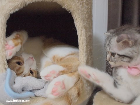 점차 유봉이와도 관계가 호전~ 같은 캣타워에서 지내기도 하고~