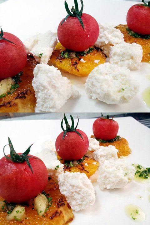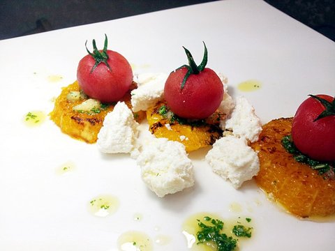 리코타 치즈를 만들고 오렌지를 구워서 같이 먹음