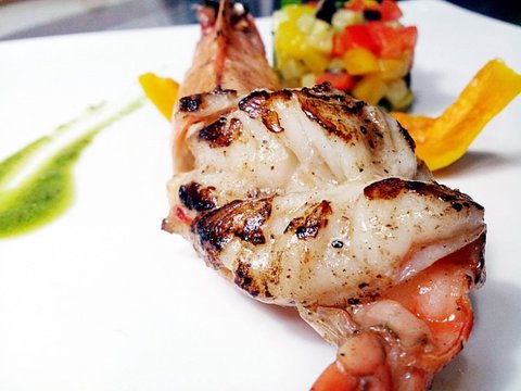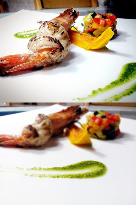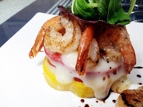 찐 단호박에 블랙타이거 대왕새우를 구워서 올림.