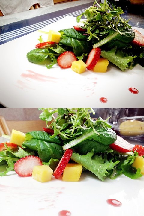 망고와 딸기를 넣고 복분자 드레싱을 만들어서