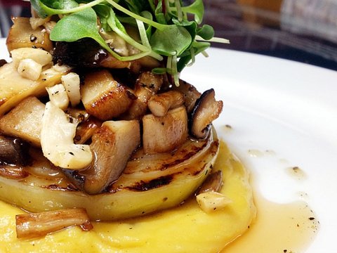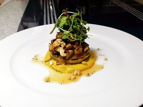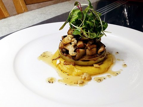 흑임자를 넣은 메이플 드레싱에 버터에 볶은 각종 버섯을 뿌려먹음.