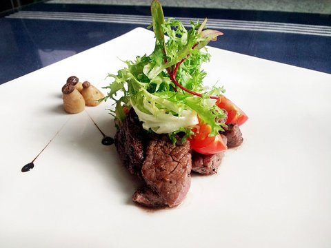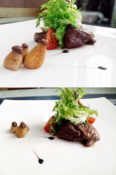 된장과 땅콩소스를 넣고 소스를 만든 후에 소고기 안심을 구워서 같이 먹음