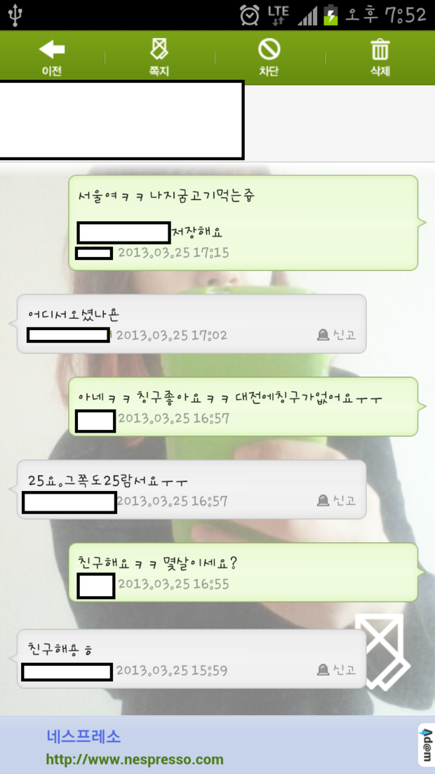먼저 친구를하자고 쪽지를보내왔고 카카오톡아이디를알려줘서