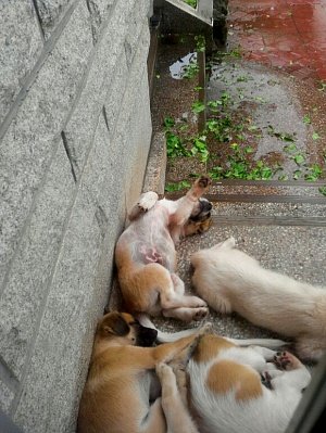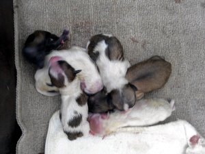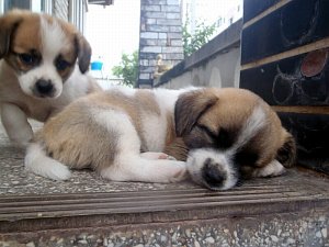 그래서 어미 포함해서 총 5마리의 강아지가 남아있는데 애기들이