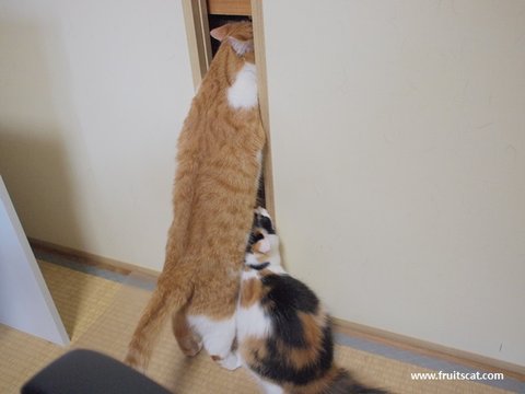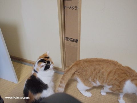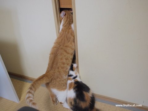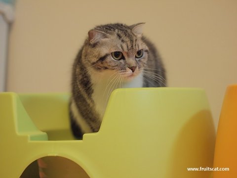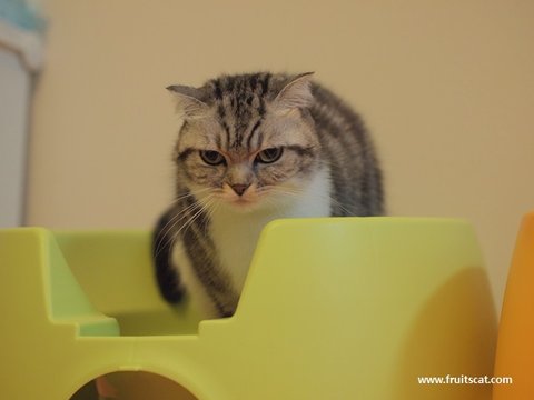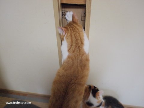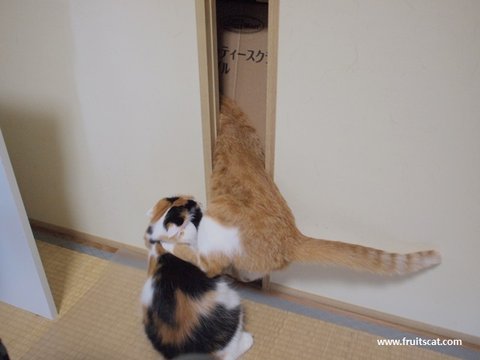 열심히 체중을 실어 박스를 앞으로 쏠리게 해서 틈을 점 점 크게 만들고 있는 유봉이입니다.