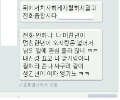 오지랖인 것 같아서 그냥 차단하고 다 씹고 넘어갈까 했는데, 연락도 안하고 지내고 있는 나한테도 시도 때도 없이 이렇게 찝적 거리는 거 보면 얼마나 많은 여자한테 그랬을까 싶기도 하고 갑자기 이런 녀석 기다리고 있는 여치니도 불쌍해지는 거임.