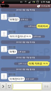 그리고 어제 새벽 5시경에는 여자친구한테 카톡과 전화가 10통정도 왔음.