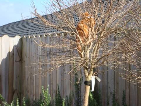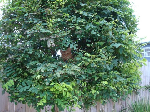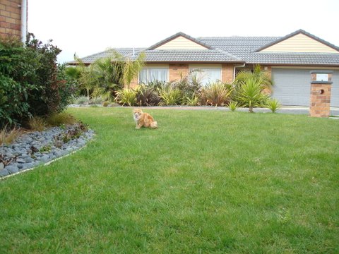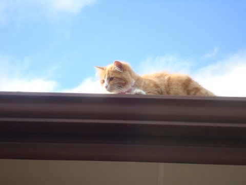 파란 하늘 아래 지붕 위의 뚱이 ![]()