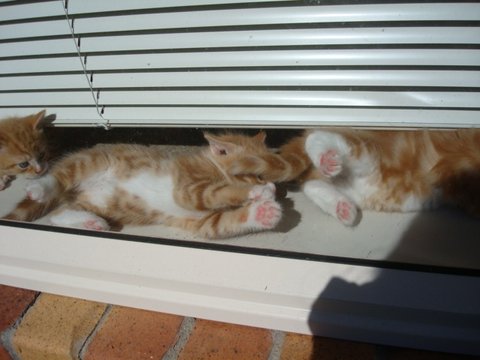 다섯 아가 중 세 마리는 분양 보냈고 (사진은 왜 네마리지??) 뚱이랑 훈남이만 맡아 키우게 되었어요.