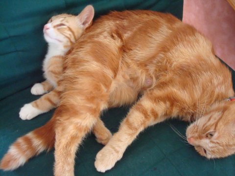 하루하루 성격 나쁜 고양이로 커가던 도도한 우리 애기가 무려 다섯 고양이의 엄마가 돼버림!! ![]()