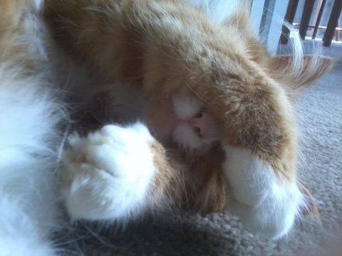 잘 놀라고 겁 많고 순하고 맨날 훈남이와 애기한테 당하는 막내 고양이