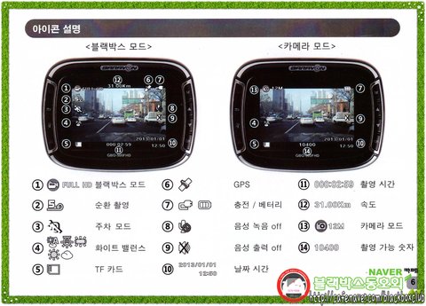 * '블랙박스 모드; 녹화모드와 동영상 재생모드' 로 되어 있으며
