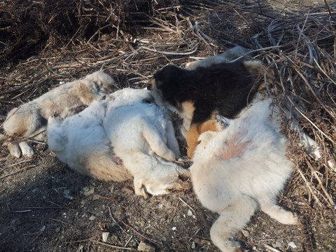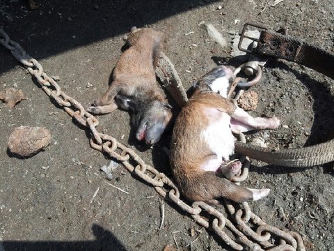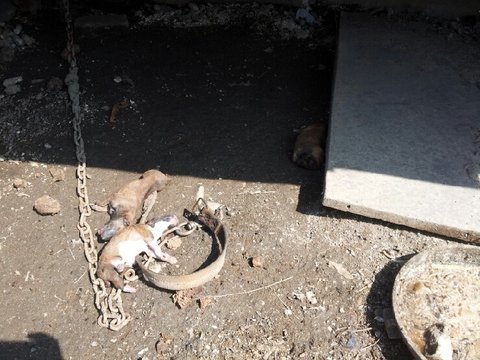 불쌍하게 죽어간 새끼들과 또 새끼를 낳다가 힘들게 죽은 어미개...(사진에서 누렁이)