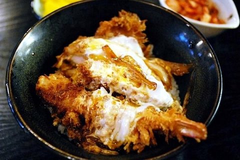 요거는 새우튀김이랑 돈까스가 같이 올라간 믹스 가츠동이에요!!!