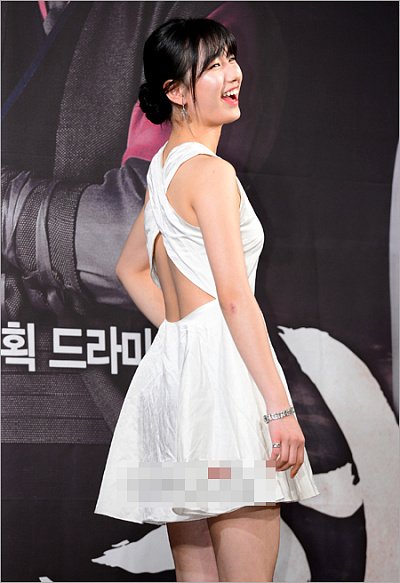 제작보고회에 등 훤히 뚫린 미니 원피스를 입고 옴ㅋㅋㅋ