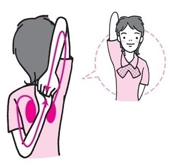 숨을 크게 들이마신 뒤 30초 숨을 정지한다. 손을 반대로 잡고 똑같이 반복한다.