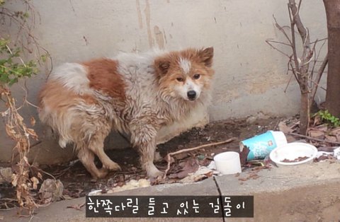 나왔었어요 ~ 밥을 주면서 한 삼주전부터 다리를 저는 유기견이 보이더라고요