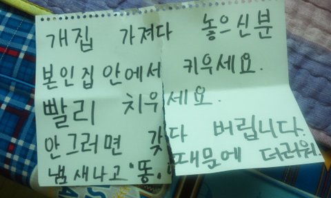 놓아두겠다고 곧치울거니 조그만 양해해 달라고 써서 녀석 며칠동안
