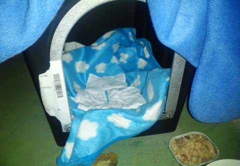 핫팩 네개랑 캔이랑 물이랑 두고 지붕위는 담요로 감싸줬어요