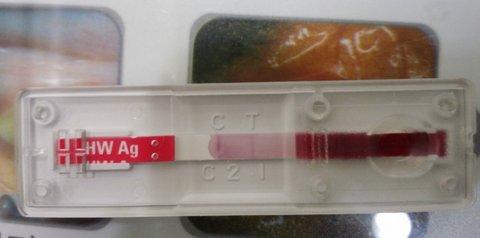 일단 길에 오래 있었던 아이기에 혈액을 뽑아 심장사상충 검사를 했어요