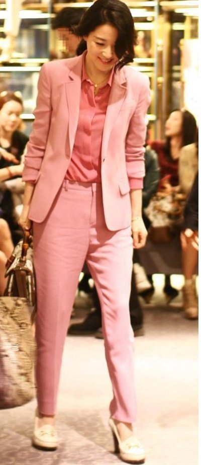 전신이 다 올~ 핑크 돋는 수트를 입은 이영애