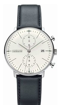 바로 저 시계예요! 블랙 스트랩에 깔끔한 디자인! 폭풍 검색해보니 이번에 우리나라에 수입한지 얼마 안된 독일 시계의 명문 융한스워치(JUNGHANS WATCH) 의 ‘Max bill chronoscope (막스 빌 크로노스코프) 컬렉션’ 이라고 하네요 !