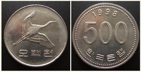 500원 동전은 한해에도 몇억개씩 만들어지지만1998년에는 IMF파동으로 500원 주화는 8000개밖에안만들어졌다고 하네요.