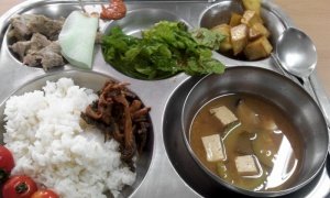 (호박죽, 돼지고기흠..뭐였더라, 김치 꽁치조림)