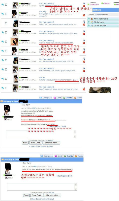남자들도 라인으로 일본녀, 페북으로 서구권 여자들한테 되도않는 언어로 저러더라ㅋㅋㅋ 우리나라사람들 외국인 참 좋아하는듯